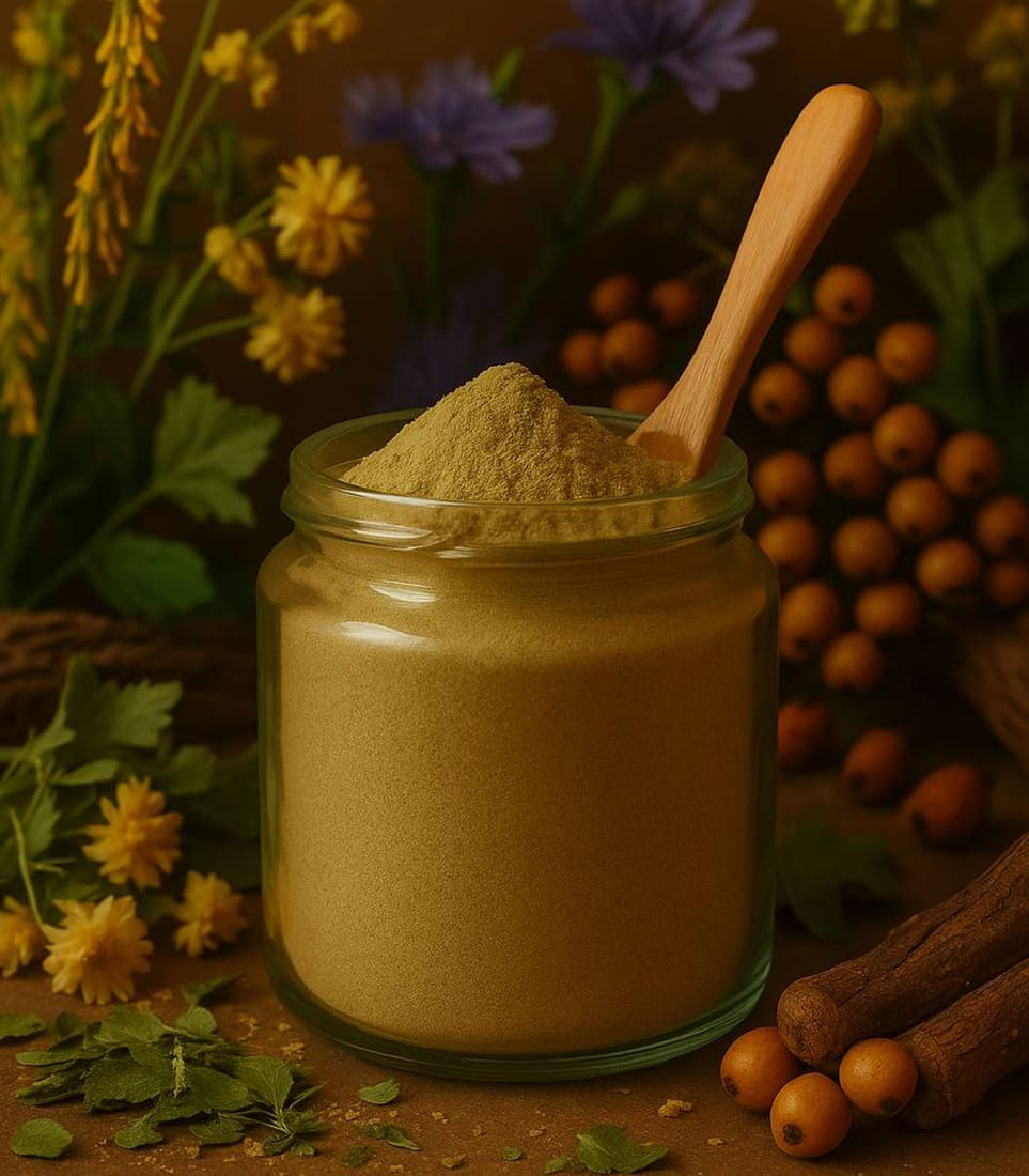 ⦁ Aktivne supstance: Inulin (Cichorium intybus, Helianthus tuberosus), flavonoidi (Vaccinium myrtillus, Crataegus monogyna, Solidago virgaurea), saponini (Trigonella foenum-graecum), berberin (Berberis vulgaris), silimarin (Silybum marianum), tanini (Equisetum arvense, Alchemilla vulgaris), polisaharidi i betaglukani (Inonotus obliquus), hlorofil (Equisetum arvense, Alchemilla vulgaris).